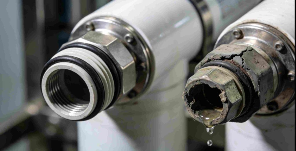 Leakage from the system is primarily attributed to the deterioration of seals or their wear out over time and loosening of the connections. The first step is to visually inspect the interfaces of the pipes and the seals of the membrane housing for any water infiltration. A pressure test can be done to detect any leaks even if they are very small because these minor leaks can lead to water wastage and thus reduced efficiency of the system.