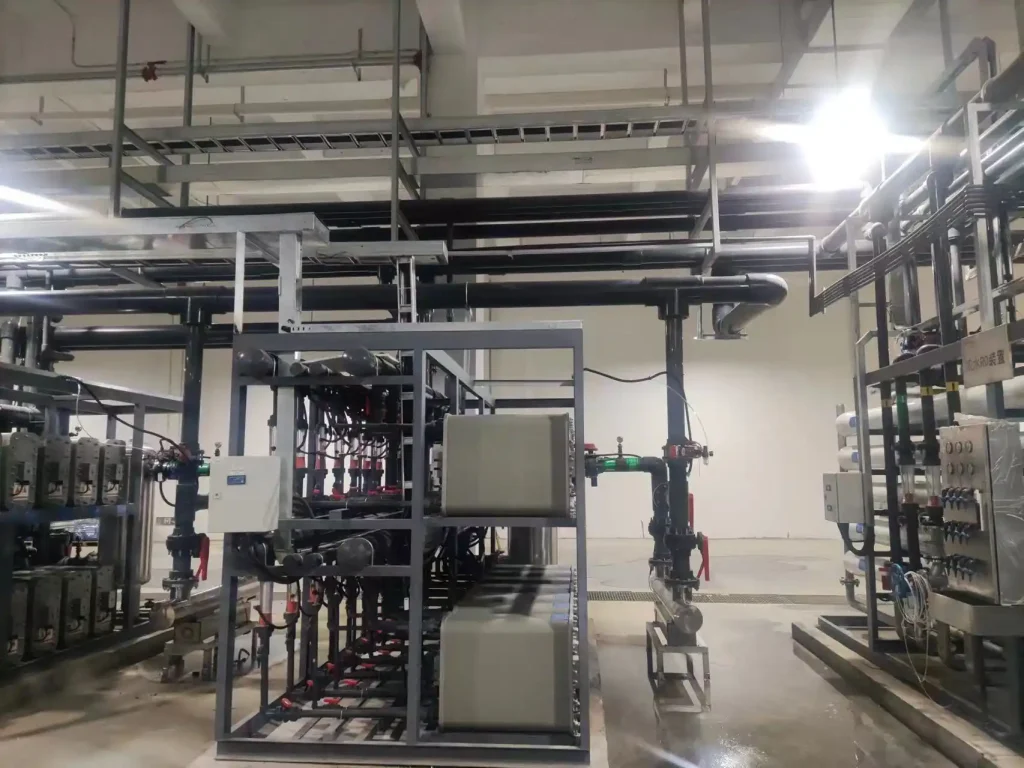 This technology combines electrodialysis and ion exchange, does not require acid-base regeneration, and is a core green process for preparing “high-purity water”.