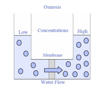 Many people get confused over which method of water flow. Here’s a quick method to remember: Osmosis is a natural process that follows the lead of nature. Water flows naturally from low-solute zones (less chemicals or salt) to areas with high sulfate (more salt or chemical) to achieve equilibrium. There is no pressure or energy required, it happens naturally.